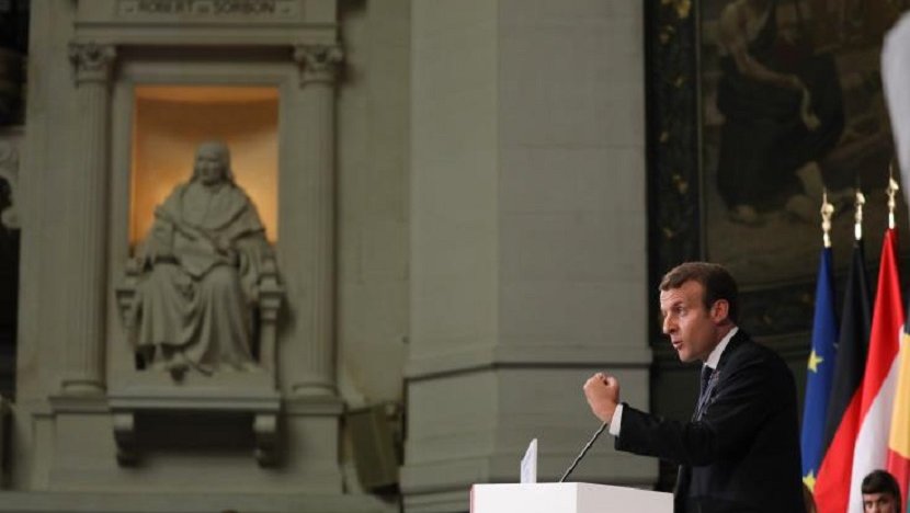 Ο 39χρονος Γάλλος ηγέτης μίλησε για περισσότερο από μιάμιση ώρα ενώπιον φοιτητών του Πανεπιστημίου της Σορβόνης στο Παρίσι, σε μια παθιασμένη ομιλία που περιείχε σειρά προτάσεων για την ΕΕ των 28.