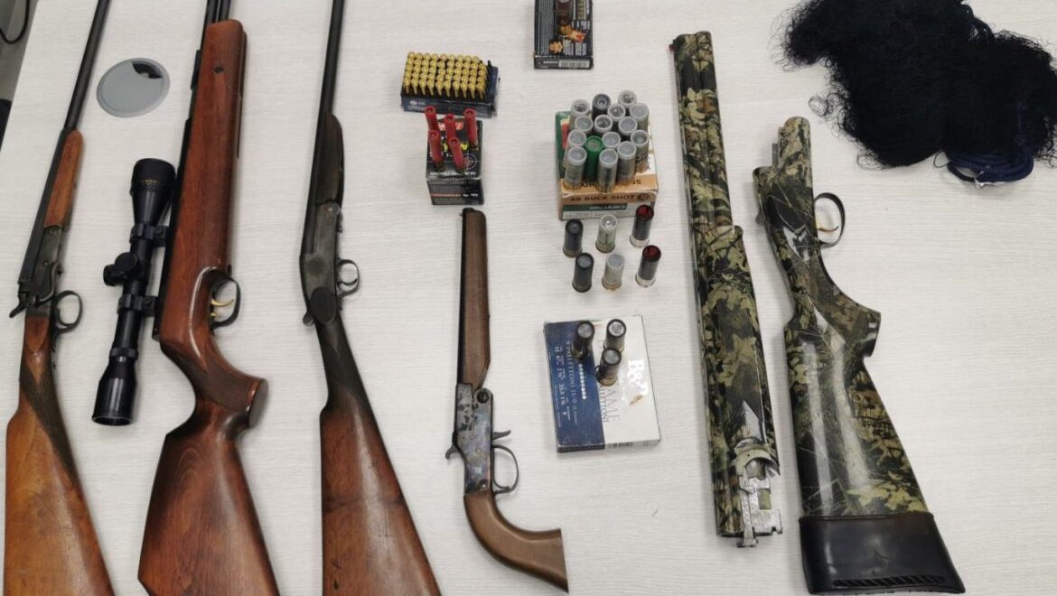 Εντοπίστηκε επίσης κεφάλι αγρινού, ποσότητα 29 κιλών κατεψυγμένου κρέατος, ξόβεργα καθώς και διάφορα άλλα τεκμήρια που φαίνεται να σχετίζονται με τη λαθροθηρία. Επιπρόσθετα, ανευρέθηκαν έξι κυνηγετικά όπλα, καθώς επίσης και αριθμός φυσιγγίων.