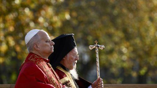 Ο Πάπας Λέων και ο Οικουμενικός Πατριάρχης Βαρθολομαίος συμμετείχαν το απόγευμα σε τελετή στη Νίκαια της Βιθυνίας, τιμώντας τη συμπλήρωση χιλίων επτακοσίων ετών από την πρώτη Οικουμενική Σύνοδο.