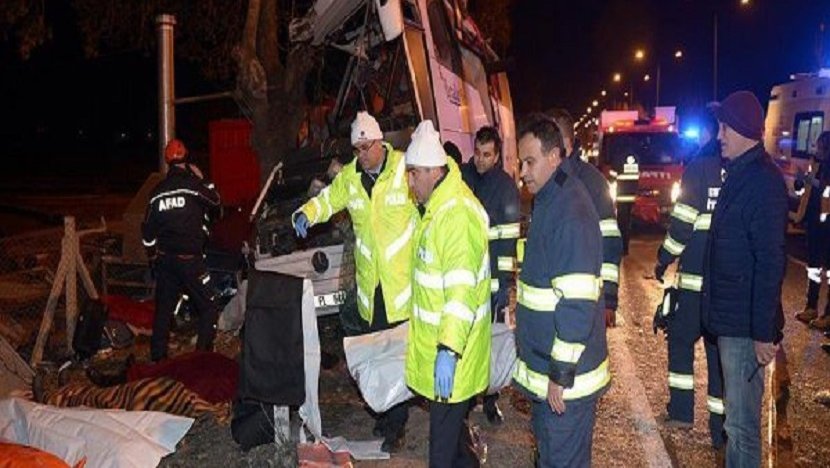 Έντεκα άνθρωποι σκοτώθηκαν και 46 τραυματίστηκαν τη νύχτα της Παρασκευής προς Σάββατο στην Τουρκία όταν το λεωφορείο στο οποίο επέβαιναν έπεσε πάνω σε δέντρα στην άκρη του δρόμου, έγινε γνωστό από επίσημη πηγή.