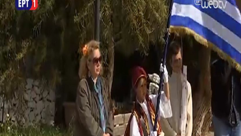 Ο μοναδικός μαθητής του νησιού Αρκιούς ο οκτάχρονος Χρίστος πήρε το πρωί την ελληνική σημαία και έκανε παρέλαση μόνος.