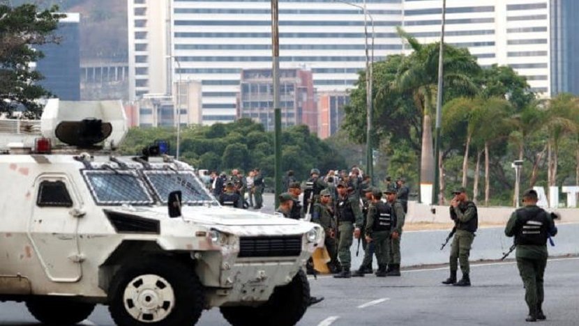 Οι συγκεντρωμένοι εκτόξευσαν πέτρες και χτυπούσαν τα οχήματα με ρόπαλα, λίγες ώρες αφότου ο ηγέτης της αντιπολίτευσης Χουάν Γκουαϊδό κάλεσε τον στρατό να ξεσηκωθεί και να τον στηρίξει. Σύμφωνα με το Γερμανικό Πρακτορείο, πολλοί κάτοικοι του Καράκας είχαν συγκεντρωθεί κοντά στη στρατιωτική βάση Λα Καρλότα για να εκφράσουν την υποστήριξή τους στον Γκουαϊδό. Με το πλήθος ενώθηκαν και στρατιώτες που έφεραν γαλάζιες κορδέλες οι οποίες συμβολίζουν τη "νέα αρχή", όπως είπε ένας από αυτούς στο τηλεοπτικό κανάλι NTN24 της Κολομβίας. Από την περιοχή υψωνόταν καπνός και ακούγονταν πυροβολισμοί, δεν είναι όμως σαφές ποιος και γιατί πυροβολούσε. Ένας αξιωματικός στη βάση Λα Καρλότα είπε στο φιλοκυβερνητικό κανάλι Telesur ότι οι αναφορές περί "λιποτακτών" είναι λανθασμένες. Τόνισε ότι οι στρατιώτες που παραμένουν πιστοί στον πρόεδρο Νικολάς Μαδούρο έχουν υπό τον έλεγχό τους τη βάση.
