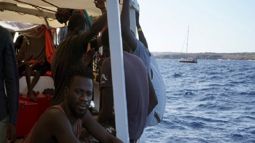 Δέκα μετανάστες πήδηξαν σήμερα από το σκάφος της ισπανικής ΜΚΟ Open Arms στη θάλασσα σε μια προσπάθεια να φθάσουν κολυμπώντας στο ιταλικό νησί Λαμπεντούζα, που βρίσκεται πολύ κοντά, ενώ η Μαδρίτη θα προτείνει μια νέα λύση αντιμέτωπη με μια «ανθρωπιστική έκτακτη ανάγκη».