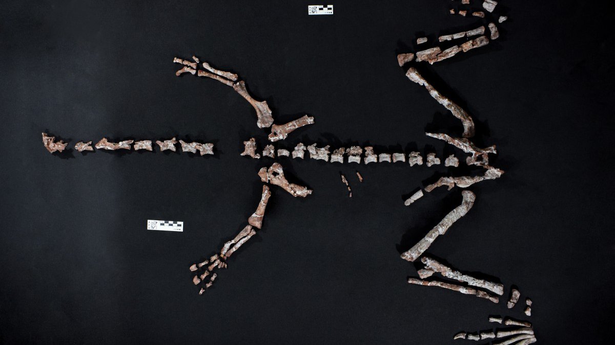 Ο σκελετός που βρέθηκε αποτελείται από τμήμα του κρανίου, πλήρη σπονδυλική στήλη ως την ουρά και σχεδόν ολόκληρα μπροστινά και πίσω άκρα.